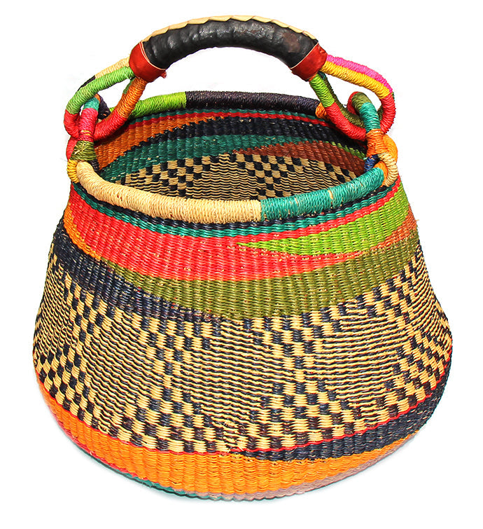 Bolga Pot Design Market Basket, Mixed Colors
