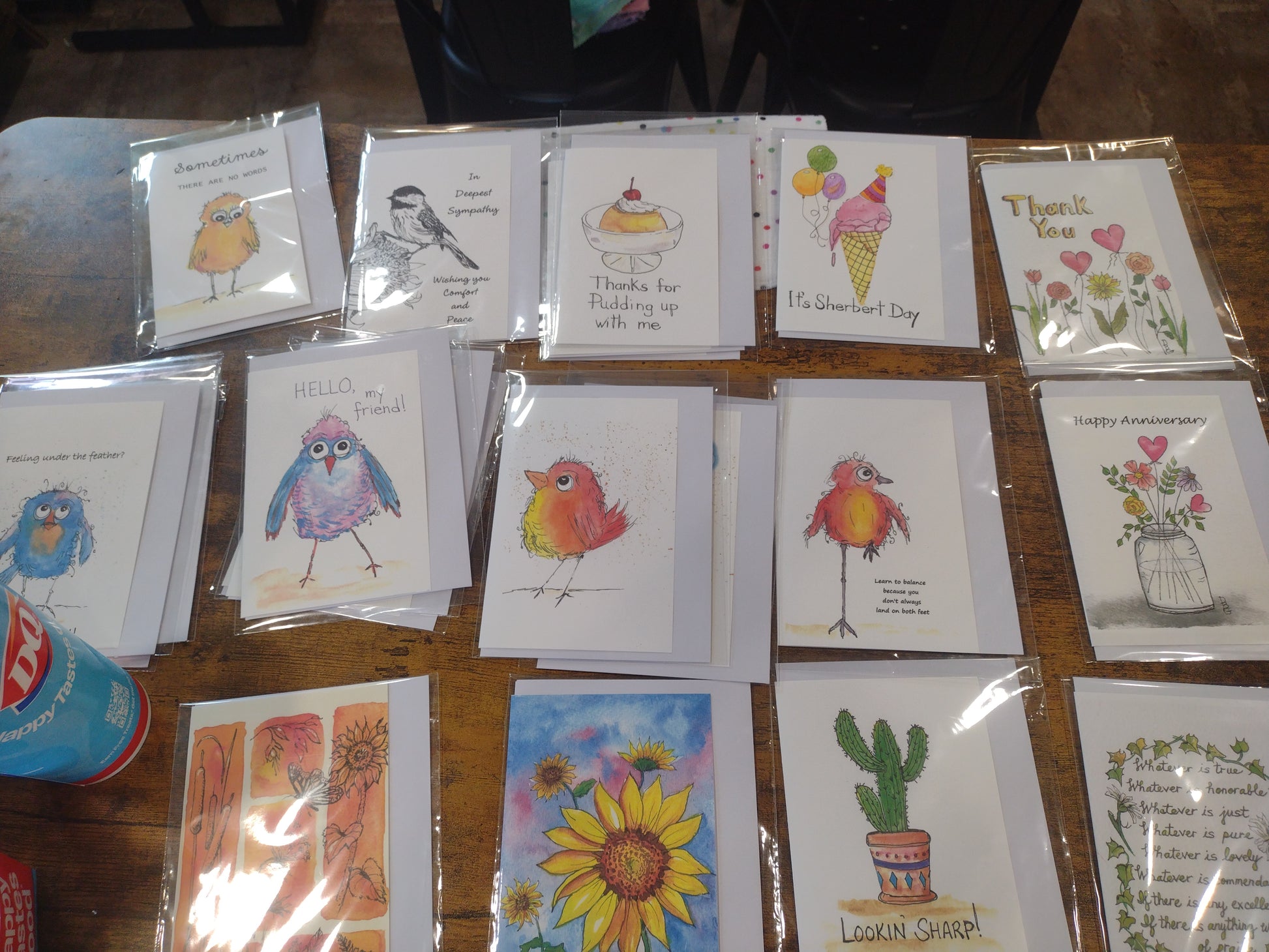 "thinking of you" red and yellow bird